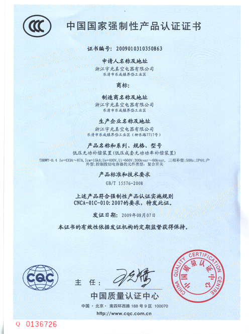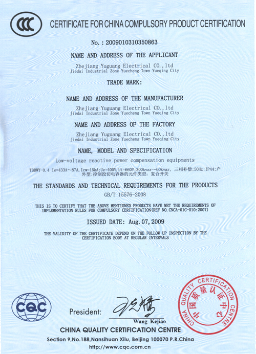 低压无功补偿装置CCC证书