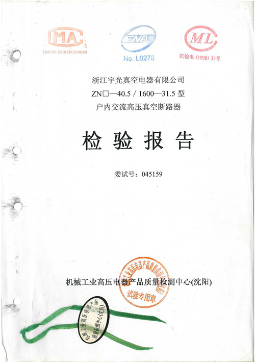 户内35KV真空断路器检验报告