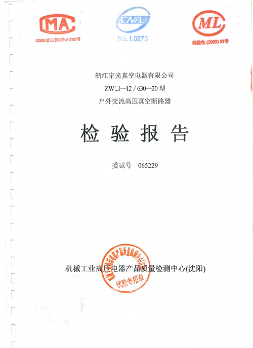 户外10K真空断路器检验报告